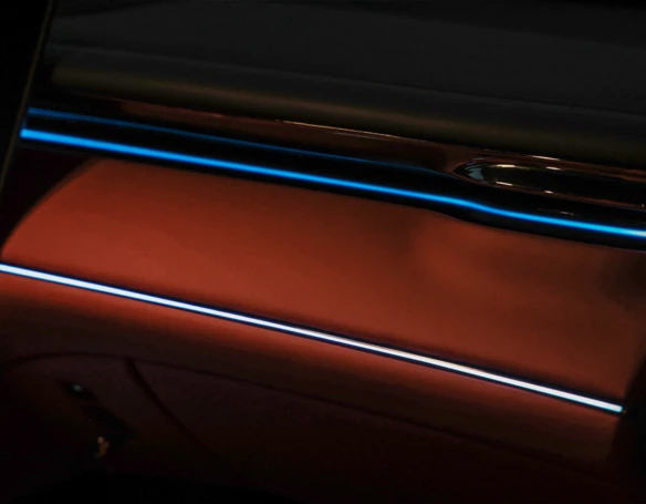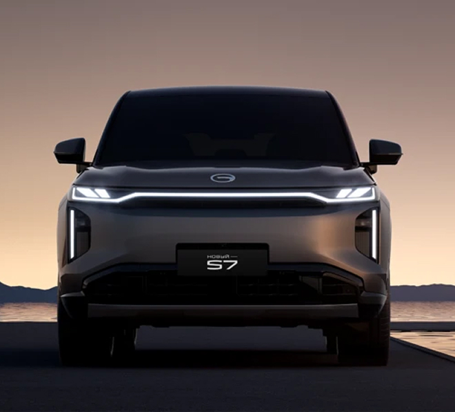 Text: The GAC S7 embodies progress and the brand's new design language, combining the aesthetics of a premium SUV with the intelligence of the future. Its impressive dimensions (4.9 meters long) and 200 mm of ground clearance ensure confidence on any surface, while the modular EV+ platform guarantees an exceptionally smooth ride. The model's key visual feature is the intelligent Skyline light strip, comprised of 2,248 LEDs, capable of simulating lighting scenarios and emotions. This crossover is designed for those who aren't willing to compromise between the power of a hybrid system, business-class comfort, and the latest autonomous driving systems.