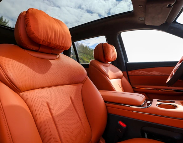 The GAC S7 is equipped with an advanced third-generation hybrid system, delivering impressive performance and a combined range of over 1,000 km. The magic of light and visibility: Innovative AI-powered optics and 270-degree panoramic glass create a unique visual experience and maximize natural light in the cabin. A cabin on wheels: The interior is trimmed in Nappa leather, and passengers enjoy a huge 17.3-inch overhead screen, a 22-speaker audio system, and massage seats.